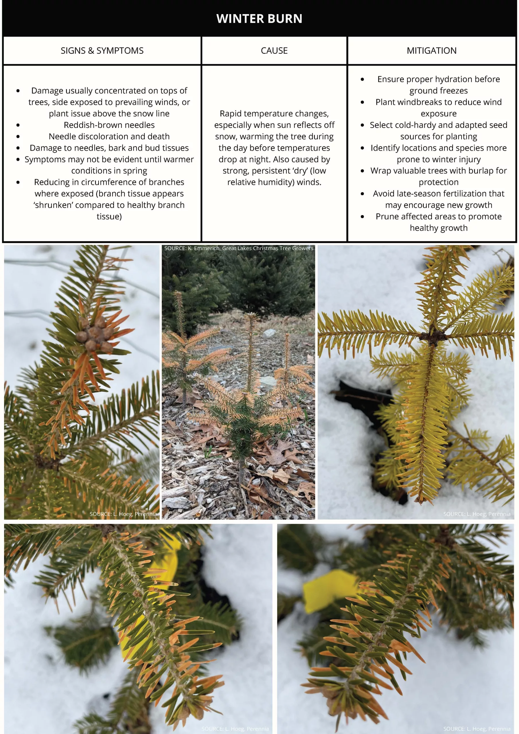 Visit each topic to learn how to recognize and mitigate winter injury in your Christmas tree lot.